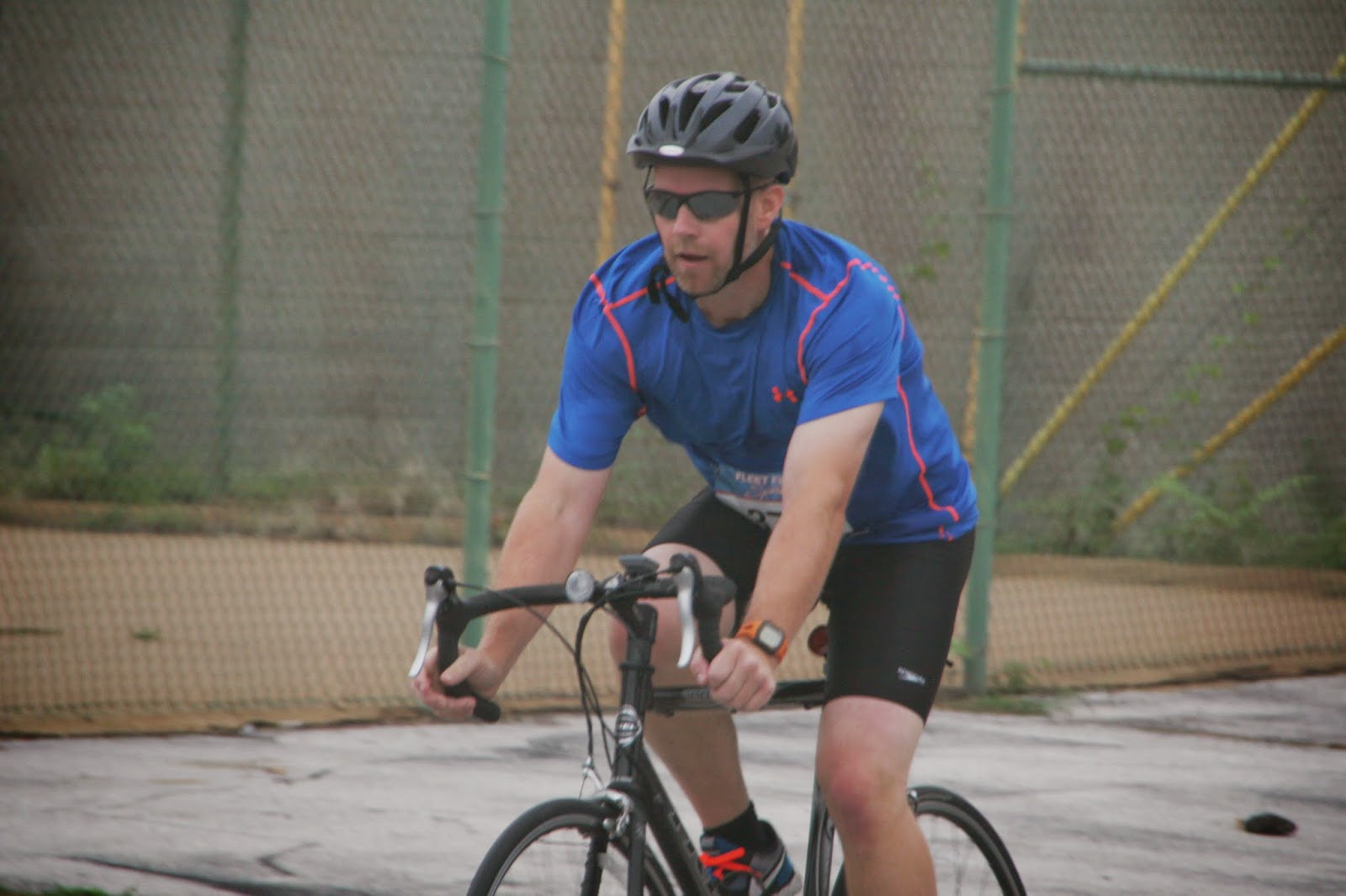 My husband and nephew pushed each other hard during the 12 mile bike ride. Every time they passed us (6 laps) they were close together.  My nephew is the one in the camo tank.